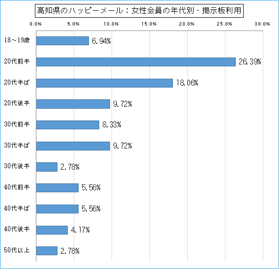 - 高知県の出会い系アプリ・サイト:ハッピーメールで募集を使っている女性会員の年代について